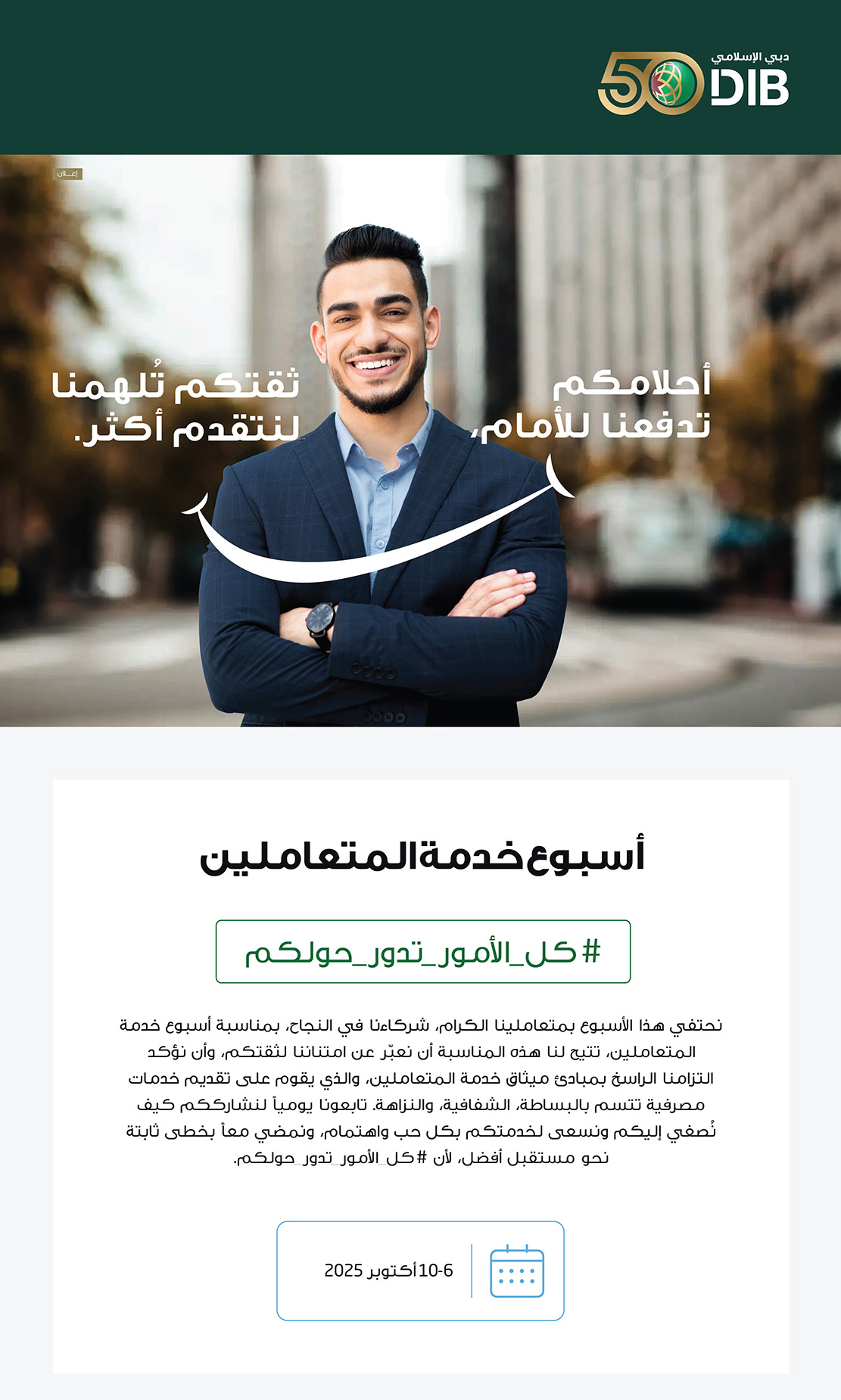 اكتشف المزيدفي هذا الأسبوع #كل_الأمور_تدور_حولكم. نحتفل بأسبوع خدمة المتعاملين، من 6 إلى 10 أكتوبر 2025.