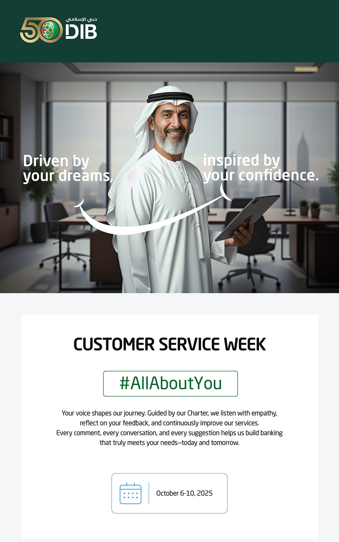 50 winners every month. Just bank with DIB to win. Open to all, existing and new customers.